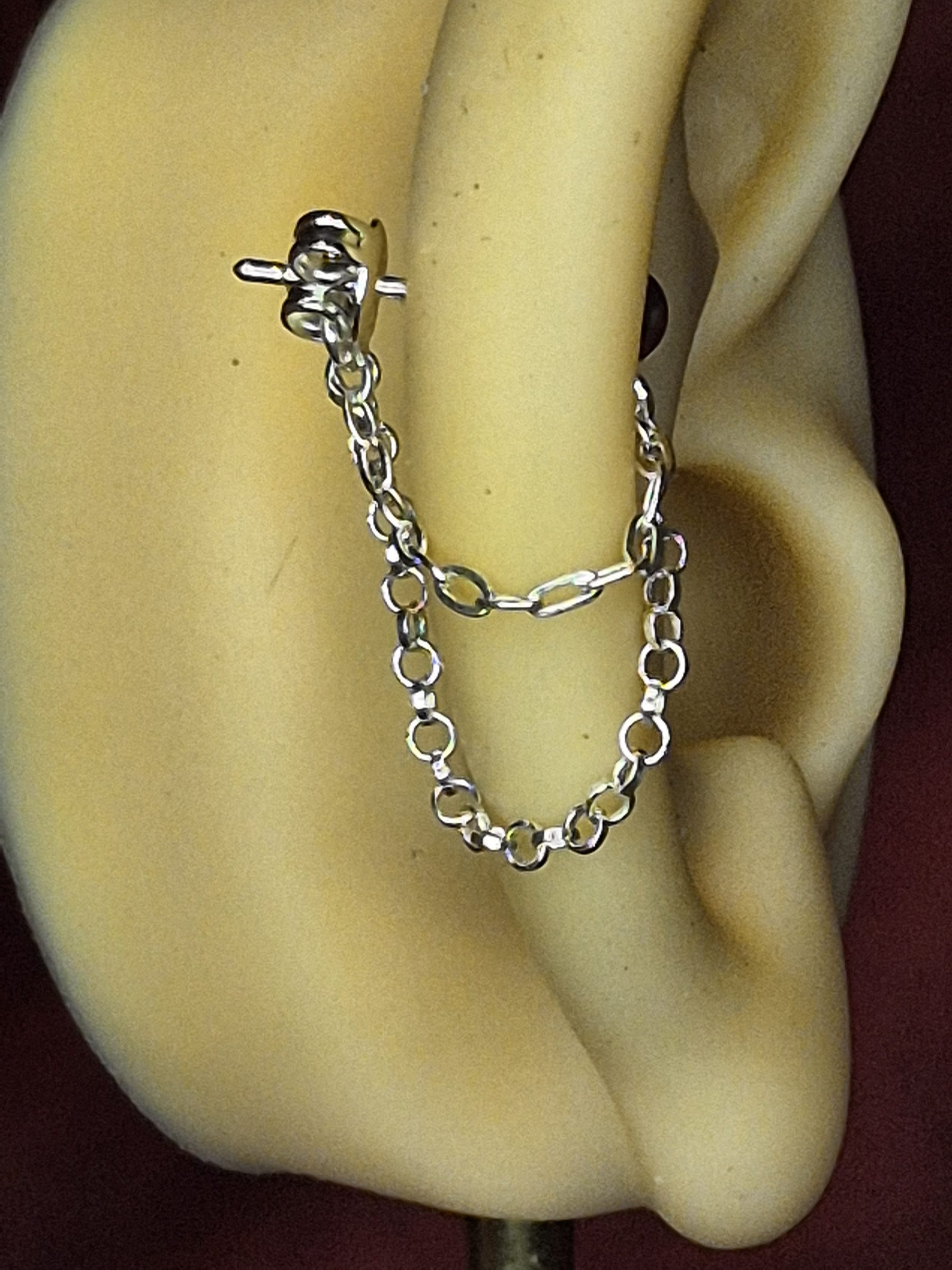 Sterling Silver Upper Helix Earring Stud, with a Double Silver Chain